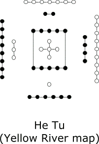 Queste matrici si riferiscono al tempo ciclico che viviamo, ma il ritmo base della realtà, l’ordine numerico dell’eternità sottostante (da cui si ricava il Cielo Anteriore) è rappresentato da un mandala a croce: He Tu (Ho Tou). Sempre con il cinque nel mezzo: si conta 1,2,3,4 e poi si va al 5 centrale; quindi 6,7,8,9 e di nuovo al centro con il 10; il centro va sempre attraversato e poi ci si torna con un movimento sistolico-diastolico. Ecco: