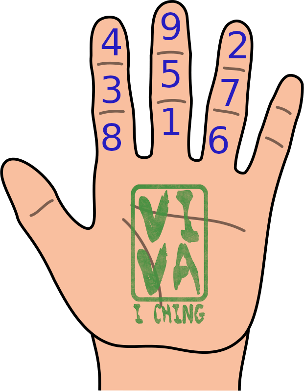 Nella tradizione gli indovini erano, per la maggior parte, non vedenti e, per memorizzare bene la disposizione dei Numeri, li associavano ai segmenti delle dita di una mano andando a toccarli col pollice dell’altra mano per eseguire i loro calcoli. Ad esempio, utilizzando indice, medio e anulare della mano sinistra nell’ordine, la riga superiore 4, 9 e 2 corrisponde ai tre polpastrelli, la riga centrale 3, 5 e 7 alle falangine, quella inferiore da 8,1,6 alle falangi.
