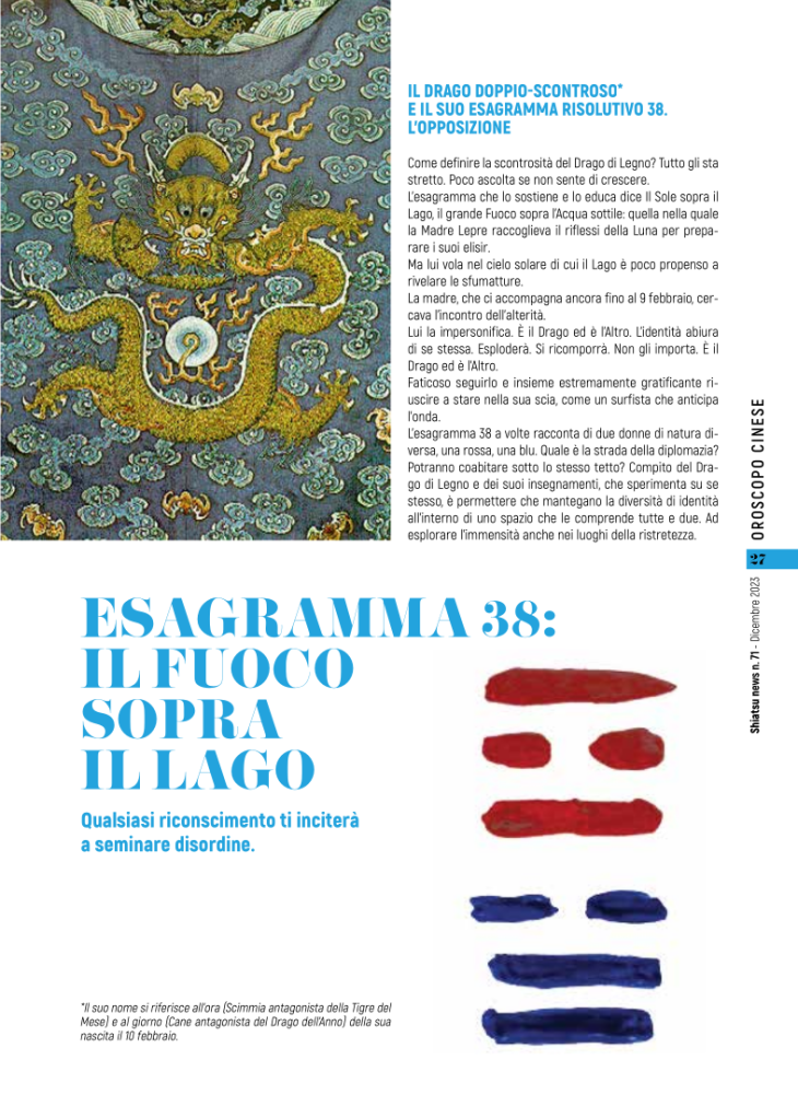 Il 10 febbraio 2024 inizia l’anno cinese del Drago di Legno associato all’Esagramma 38 dell’I Ching.