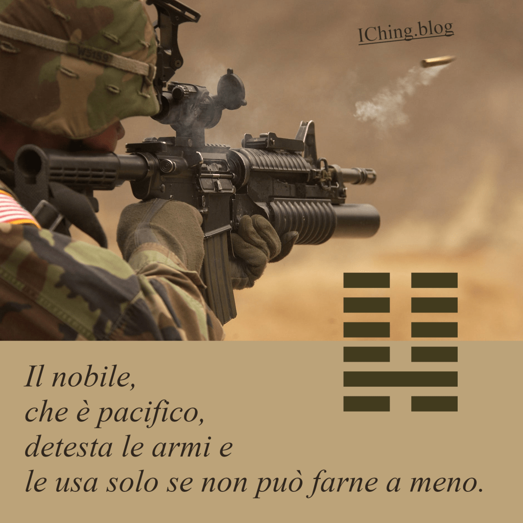 L’I Ching non è pacifista ad ogni costo, ma avverte con durezza che “l’uso delle armi porta solo carri di cadaveri ed è una sciagura”.